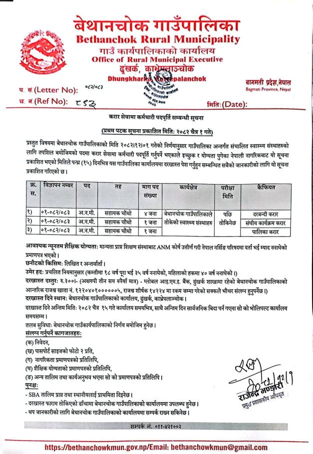 » करार सेवामा कर्मचारी पदपूर्ति सम्बन्धी सूचना ।।