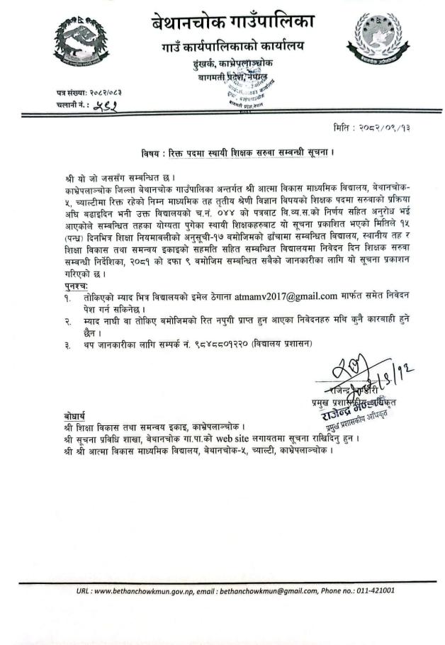 » रिक्त पदमा स्थायी शिक्षक सरुवा सम्बन्धी सूचना ।।