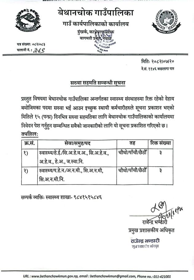 सरुवा सहमती सम्बन्धमा ।